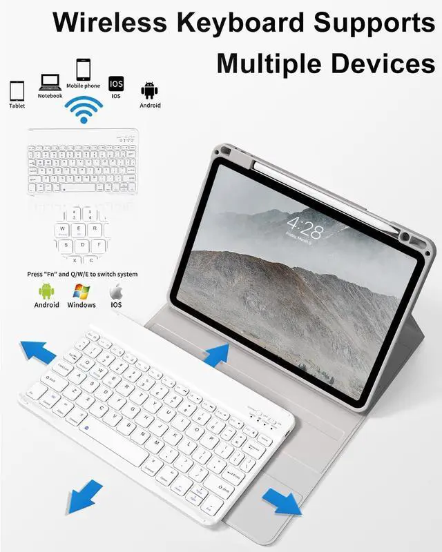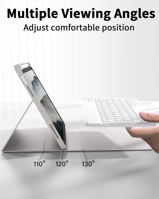 (Note: pencil is not included) ^^ Multiple Viewing Angle and Auto Sleep WakeThis Keyboard Case adopts magnetic adsorption and can be firmly fixed on the case, so it can provide a variety of stand angles for adjustment at any time. Move iPad forward or backward along the case to choose the angle that works best for your comfort. Built-in magnetic strip, support smart automatically wakes or sleep function, easily wake or close your iPad at any times, it can better save tablet power and extend its service life ^^ Package Content and