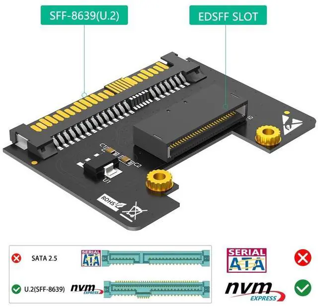Unlock the potential of your system with this versatile EDSFF E1. S to U. 2 converter card. It seamlessly transforms an EDSFF E1. S SSD into a U. 2 SSD, enabling its use in IoT, data center, and server environments. This converter expands your PC with an additional EDSFF E1. S interface, allowing you to connect devices like the DC P4511 Series EDSFF NVMe SSD. Installation is a breeze - simply slot it into your system internally through the U. 2 interface. Compliant with PCI Express 4.0 / 3.0, it supports a wide range of operating systems including Windows XP, Vista, 7, 8, 10, 11, and Linux.