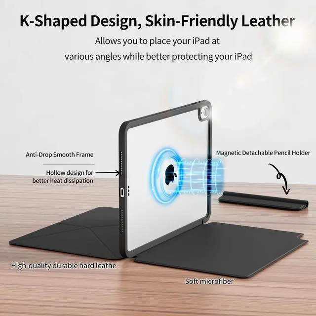 K-Shaped Folding And Buckle Pencil Holder: The magnetic buckle pen slot design makes it easy to access your pen and prevent loss. The K-shaped design can be placed horizontally and vertically at multiple angles, and the magnetic back panel stably supports the iPad
