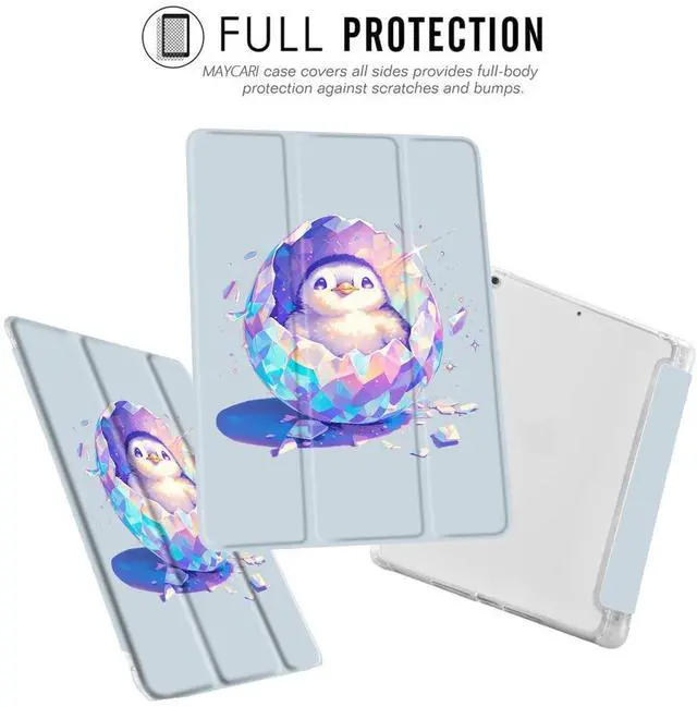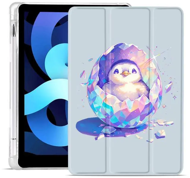 MAYCARI Hatching Penguin Fashion Case for iPad 10.9 inch 2022 with Pencil Holder, Easter Original Pattern iPad 10th Generation Soft TPU Back Protective Cover Shell, Auto Sleep/Wake Slim Shell - Blue