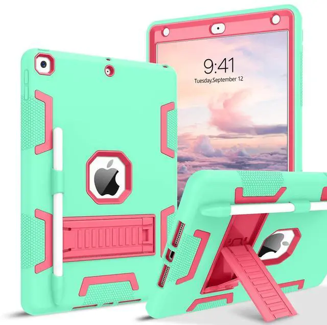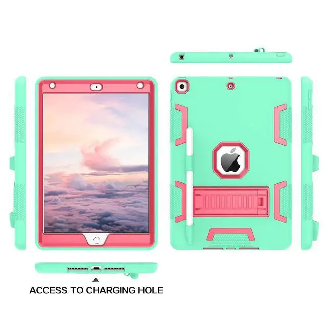 Release (Model number: A2197/ A2198/ A2200). WILL NOT fit any other phone models. ^^ Advanced 3 Layer ProtectionPremium hybrid hard Polycarbonate (PC) + soft Silicone rubber + open front hard Polycarbonate (PC) with fine craftsmanship effectively protect your iPad 10.2 2021 9th / iPad 10.2 2020 8th / iPad 10.2 2019 7th from drops, shocks, impacts and scratches during daily use, safe for kids. ^^ Functional Kickstand & Pencil Holderthis shockproof tablet case has built-in a sturdy kickstand, it can be used for vertical (portrait) stand & horizontal (landscape) stand, you can adjust for optimal viewing and typing positions based on your needs. Designed with a pencil holder easily to carry your Apple pencil with your device.