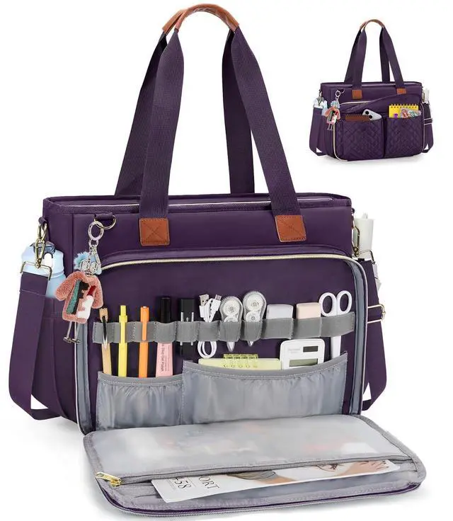 shoulder strap: 30''-55'', Double layers of the front organized compartment aim to store scattered items. The front zip compartment features 11 elastic loops of different lengths, perfectly to store markers, red pens, calculators, mini staplers, rulers, sticky notes, snacks, and morekeeping your core teaching tools handy while helping you care for your class and manage your instruction. ^^ SUITABLE FOR THE MAJORITY OF PEOPLE -Designed for work, travel, and daily errands, this multi-pocket tote bag makes an ideal bag for professionals, career women, nurses, teachers, busy moms, The laptop bag for women also provides multiple ways of carrying, it can serve as a shoulder bag, hand bag and crossbody bag, office bag.