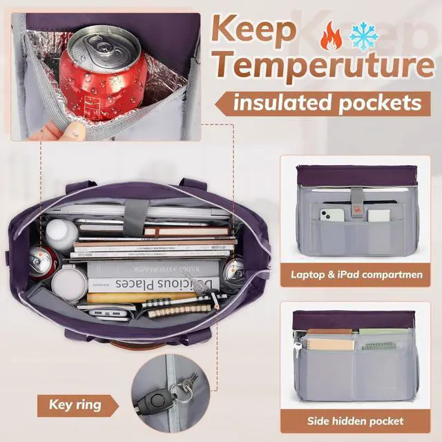LARGE CAPACITY & MULTIPLE Pockets- The large main compartment of this teacher laptop bag with 10 inner pockets could easily hold all your daily necessities in an organized way, including padded compartments that can accommodate 15.6 -inch computers and 12.9 -inch iPads. Insulated pockets on both sides are designed for drinks or coffee storage and keep cold or warm for hours.