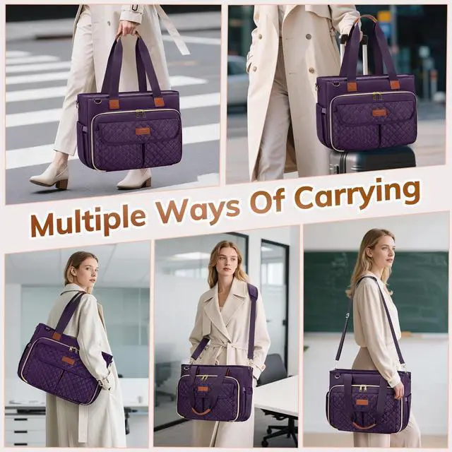 ^^ Effortless Portability: Designed for comfort and durability, this work tote bag for women features cloud-soft cotton-padded handles to ease hands and shoulder strain. The outer sides of the bag are elastic pockets that can hold water cups and umbrellas, and the back luggage strap slides smoothly over suitcase handles, this travel tote bag with such a convenient design is the perfect companion for flights, business trips, and daily commutes. ^^ LONG LASTING MATERIALS - Made of durable water & scratch resistant polyester fabric, metal feet on the bottom to keep it from getting scuffed, premium hardware, smooth zippers and reinforced stitching at each stress point ensures the laptop briefcase durability for long-term performance. High-quality work bags for women is dedicated to providing a comfortable and reliable user experience.