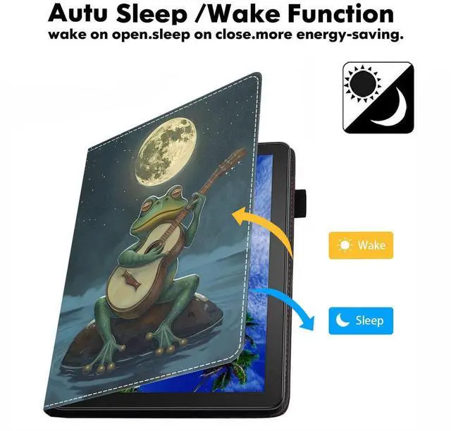 FQTBCEARI Case for Kindle Fire 7 Tablet (7", 9th/7th Generation, 2019/2017 Release), Slim PU Leather Cover with Card Slot & Auto Wake/Sleep, Frog Playing Guitar