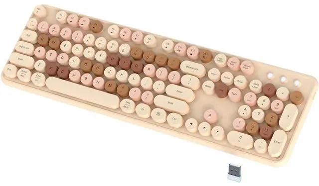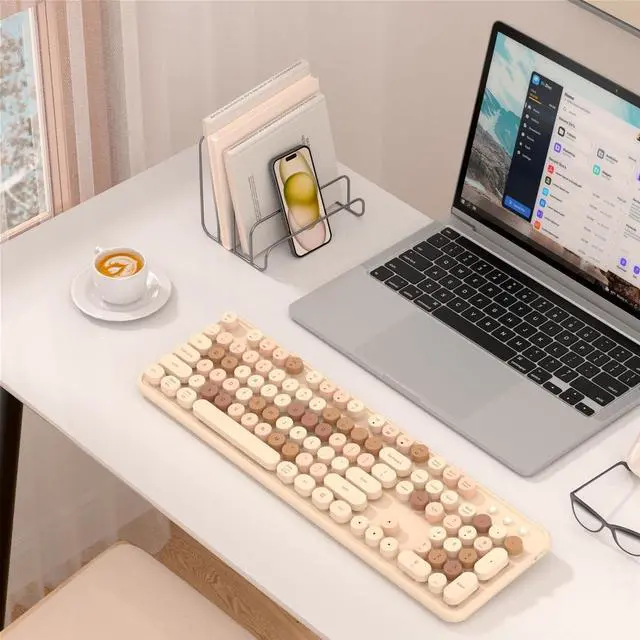 Wide Compatibility: Featuring 104 keys, including function keys and a numeric keypad, our bluetooth keyboard is perfectly sized for efficient typing. It's compatible with a range of devices including iPad, iPhone, iMac, MacBook, Laptop, PC, Tablet, Smartphone, Windows, iOS, Mac OS, and Android. Whether you need a computer keyboard, keyboard for iPad, or a cute wireless keyboard, this device fits all needs. It's the ultimate retro keyboard or creamy keyboard with number pad for any setup ^^