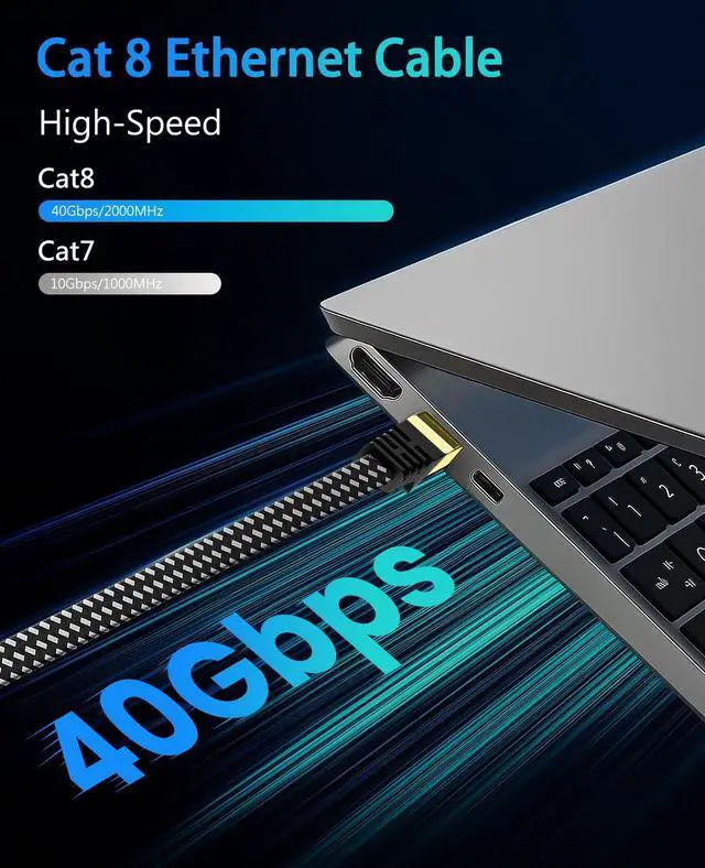 Cable CAT 8: ARISKEEN Cat8 Ethernet cable provides up to 40 Gbps data transmission speed and 2000 MHz bandwidth ^^