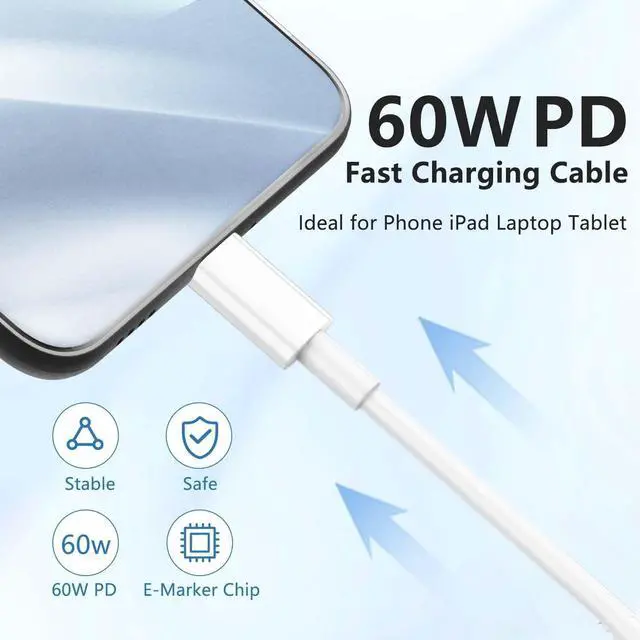 Supports Power Delivery: Cabepow iPhone 17 Charging Cable is designed for fast charging, powering up your iPhone 17 from 0% to 66% within 30 minutes, iPad Pro 50% within 35 minutes, Macbook air 50% within 35 minutes. It allows for a maximum charging speed of 60W 20V 3A and supports high-speed data sync at 480Mbps.