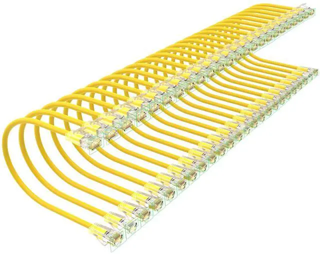 Xcftaud Cat 6 Patch Cables 2 feet (24Pack), Slim Cat6a Ethernet Patch Cable 10Gbps 550Mhz, UTP Pure Copper Patch Cables Cat6, Flexible Thin Cat6a Patch Cable for Network Devices Setup, Yellow