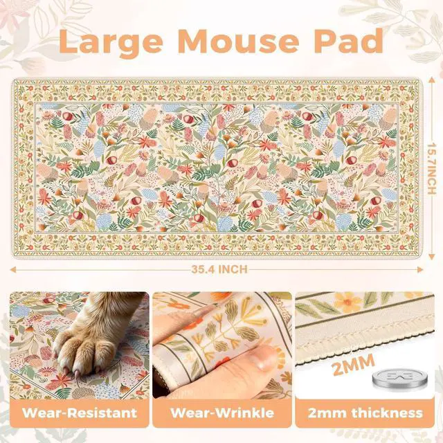 iCasso Desk Mouse Pad Extra Large,Office Desktop Mat for Women,Non Slip Computer Pad Pad with Stitched Edges,Large Keyboard mat,Cute Desk Cover Mat Work from Home School