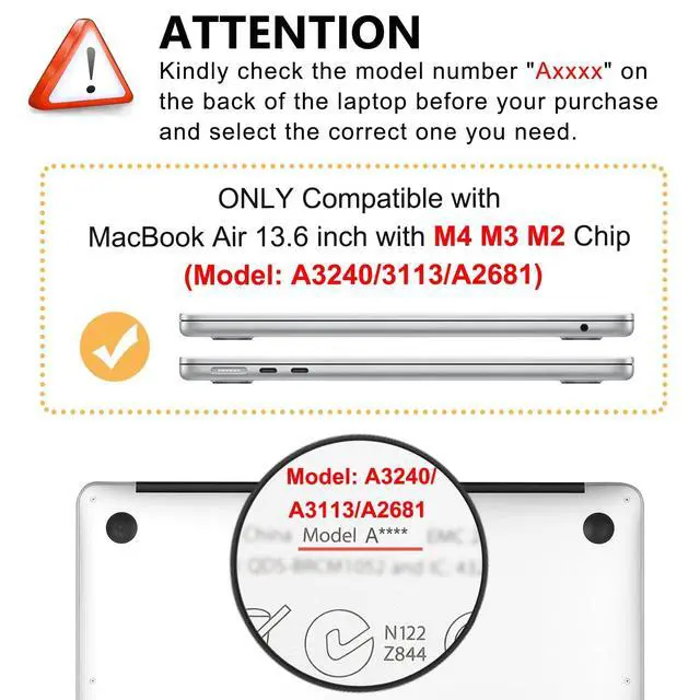 WARNING: The case was designed ONLY to be compatible with 2022 2023 2024 2025 Release Newest M4 M3 M2 MacBook Air 13.6 inch with Liquid Retina Display and Touch ID (Model: A3240/A3113/A2681).