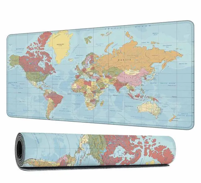Y YIHANGBEST World Map Gaming Mouse Pad Global Geography Map Large Mousepad Desk Keyboard Mat for PC,Home,Office 35.4"X15.7"
