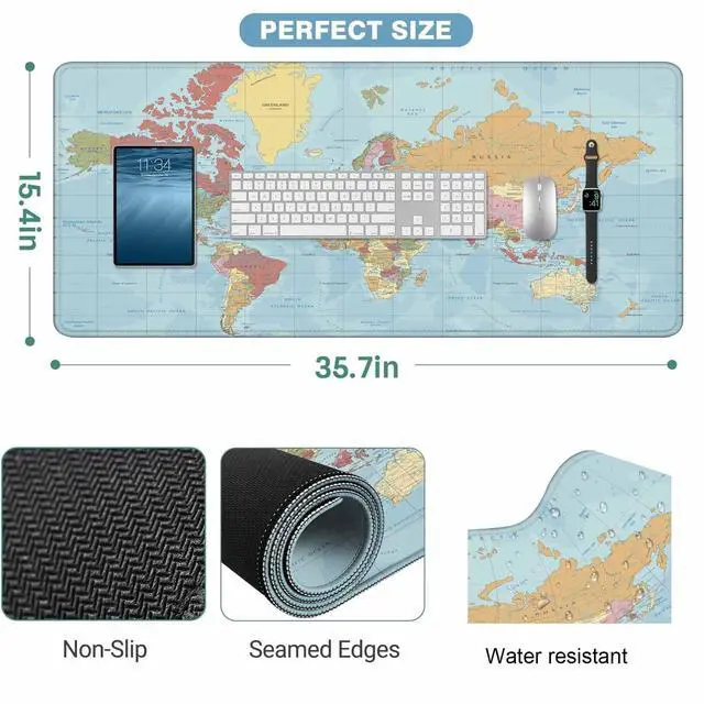 • 35.4"x15.7"x0.11" Extended Size Desk Mat :Large mouse pad design makes it provide plenty of room to place your mouse,keyboard and other desk items.protecting your desk while you playing games or working.