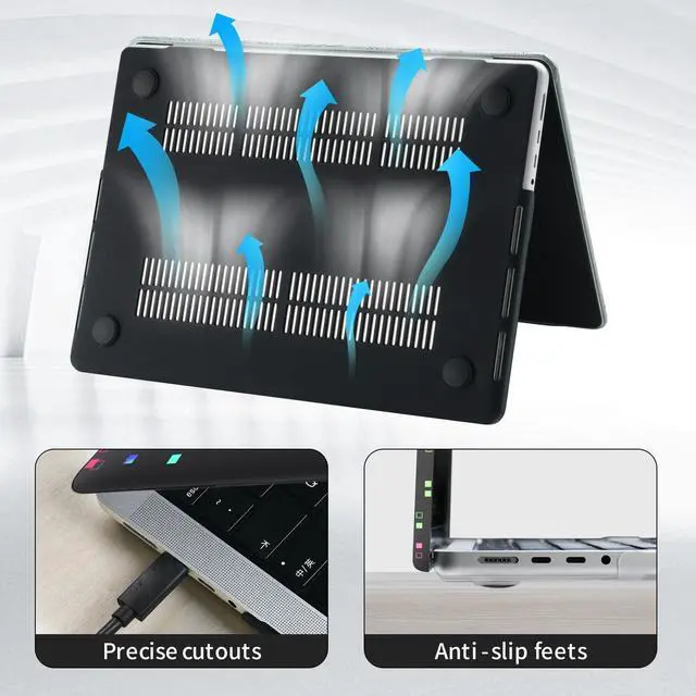 FULLY ACCESS & FULLY VENTED: Precise cutouts allow you to access all ports and features without removing the case. The bottom shell has two rows of vents and four non-slip rubber feet for maximum heat dissipation, keeping your MacBook Pro in place, safer and more stable in use ^^