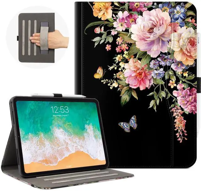 Screen Protection Band: Tie and lock the iPad Case with the Screen Protection Band when not using the iPad. To keep the case closed if the device falls, and gives much better protection to the screen. To protect your privacy more effectively. Add an extra lock to your privacy when you're not using; The Convenient Hand Strap beside the stripes enables you to hold it more stable when stays upright. Same comfort for single-handed use.