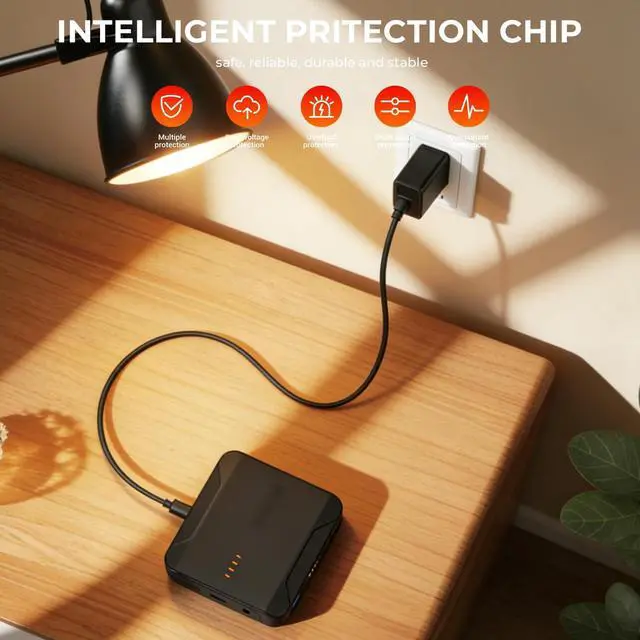 [Portable Design] Dual charging ports enable simultaneous charging of multiple devices while recharging the battery itself, providing a one-stop solution for all your needs