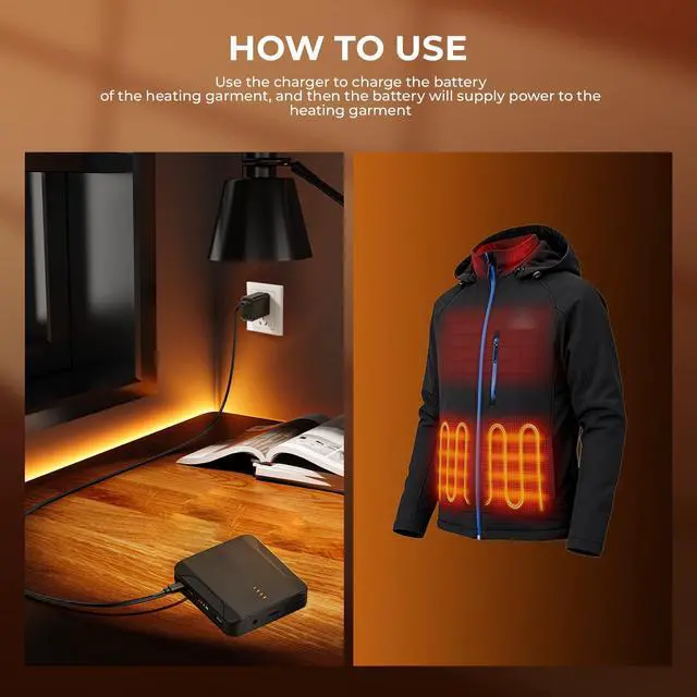 [Superior Safety] Power cord with high quality copper core, low resistivity, high strength and tensile resistance, cord shell was made of PVC material, strong and durable, charging your heated clothing safely