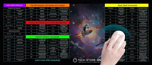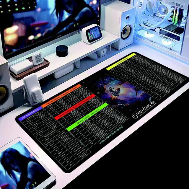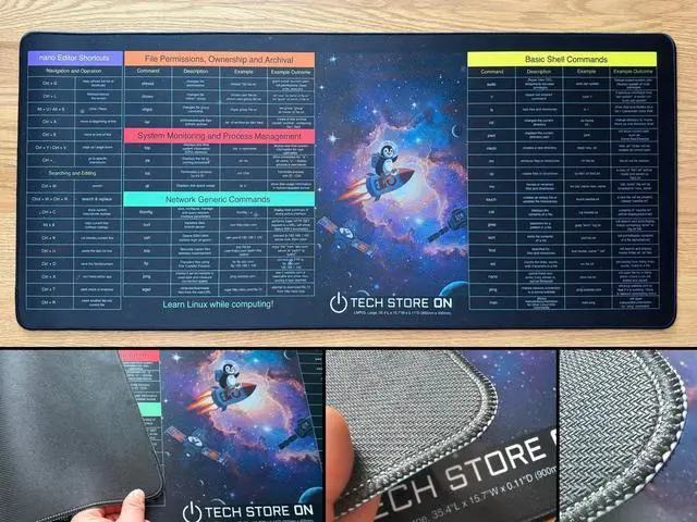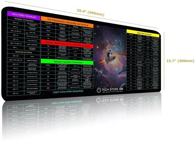 XXL Desk Mat for Coders & Creators 900 400 3 mm ( 35.4" 15.7" 0.11" ) provides ample room for keyboard and mouse perfect for coding, work, or gaming setups. ^^ Essential Linux Command Cheat Sheet quick-reference guide with the most useful terminal commands for Ubuntu, Kali, Arch, Debian, and more with real-world examples and output. ^^ Focused & Practical Design not overloaded with obscure syntax only the most valuable and frequently used Linux commands are included for everyday use. ^^ Premium Quality Construction smooth cloth surface ensures accurate mouse tracking; stitched edges prevent fraying; non-slip natural rubber base keeps it firmly in place.