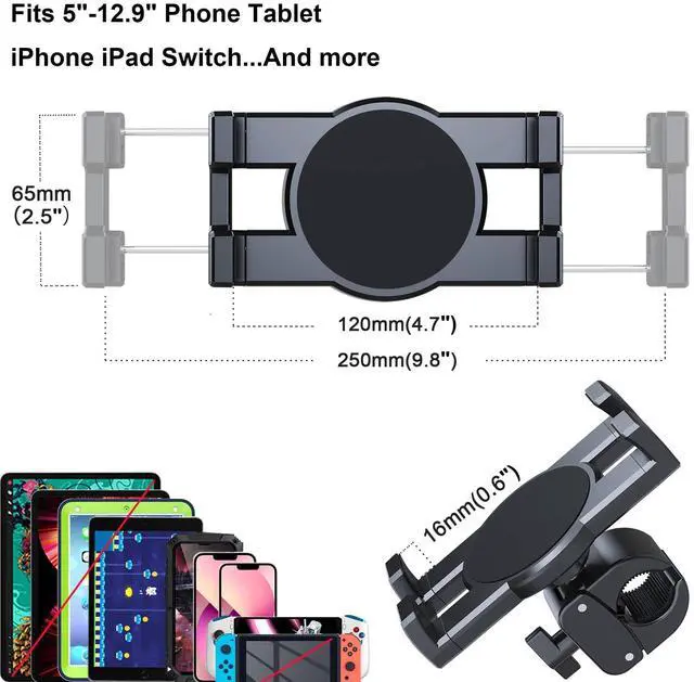 Simple & Practical: This Tablet Phone Holder Bar Mount can firmly clamp onto any bar (22mm42mm/ 0.8" 1.6" ). Not only work well with spin bike, treadmill, elliptical, stationary bicycle, any indoor workout fitness equipment with handlebar, but also suit well with microphone/ music/ drum/ tube tripod stand, desk/ floor lamp, boat pole, utility/ agricultural vehicle, farm truck, stroller, golf cart, kitchen rack shelf, rod and more. Takes mere seconds to install.