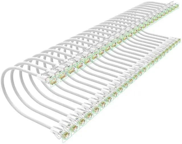 10G High-Speed PerformanceCat6a patch cable supporting up to 10Gbps speeds and 550MHz bandwidth for high-speed networks. Ethernet patch cable has excellent speeds and connectivity, fast transfer of streaming and data without loss. Cat6 patch cables perfect for home networking, office environments, and data centers gigabit network setup. ^^ Ultra Slim DesignSlim ethernet cable made of 28AWG pure copper. Slim cat6 patch cable is about 60% of standard ethernet cable thickness. Ultra-slim design make the cable to bend and stretch at will in tight spaces. The thickness of Cat 6 patch cable 2ft doesn't compromise the ability and provides reliable network transmission.