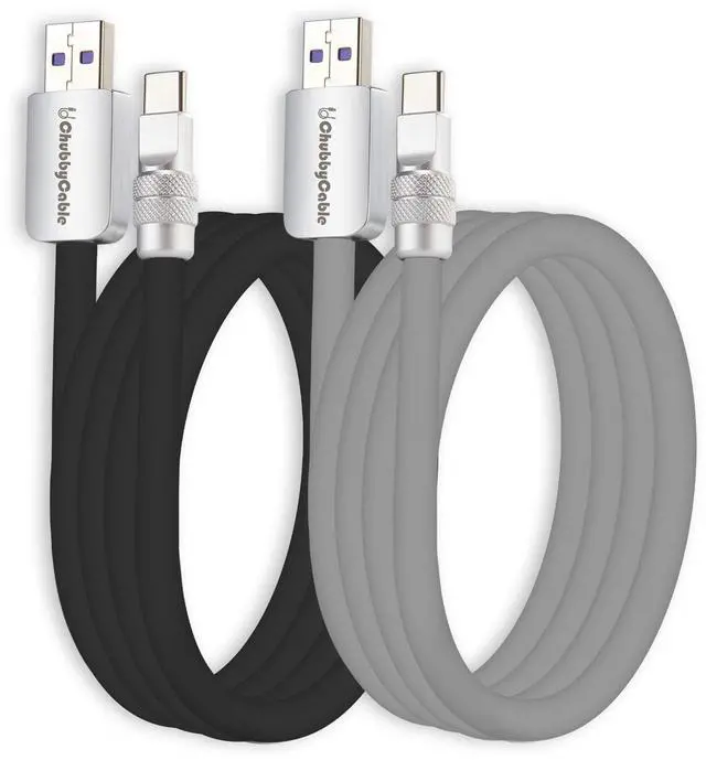 chubbycable Couple Chubby 2-Pack 120W USB C Cable Extra Thick Silicone Fast Charging Cable Compatible with iPhone 17-15 Series iPad Galaxy Series, Black+Gray, USB-A to Type-C, 3.3FT