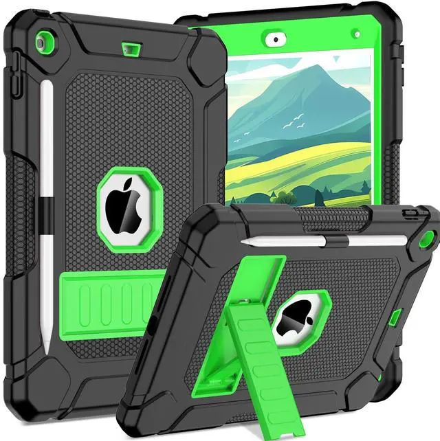 BMOUO Case for iPad 9th 8th 7th Generation (10.2 inch, 2021/2020/2019), Shockproof Protective iPad 10.2 Case with Built-in Stand/Pencil Holder, Black and Green