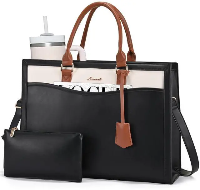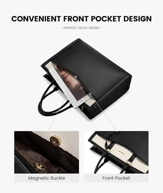 • Elegant and Stylish DesignLOVEVOOK laptop bag features a unique original design with an elegant and stylish exterior, perfectly showcasing the taste of modern urban elites.The cleverly designed front pocket enhances the practicality tote bag. Not only does it add a sense of depth to the overall appearance, but it also provides convenience for storing essential items such as phones, wallets, and business cards, keeping everything organized.