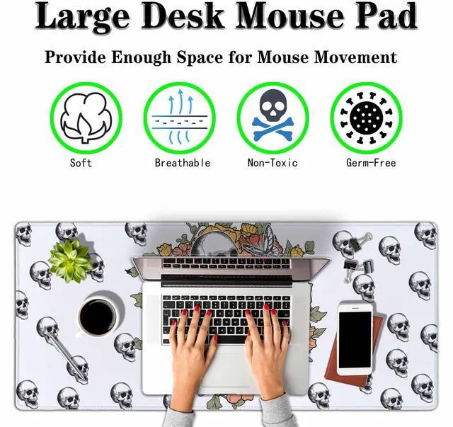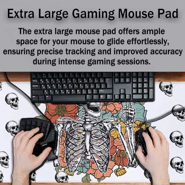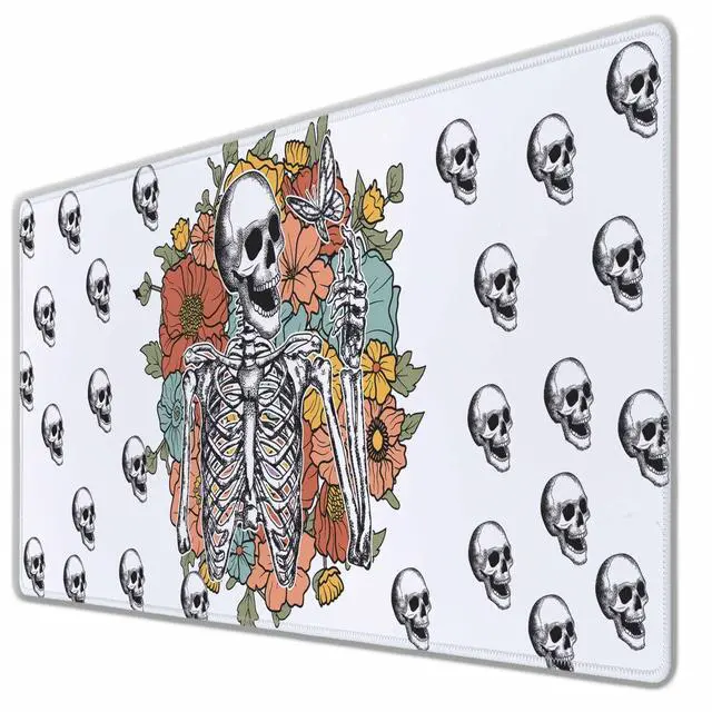 Y YIHANGBEST Skeleton Wildflower Full Desk Mouse Pad Funny Retro Skull Halloween Gothic Large Gaming Mousepad for Keyboard PC.Home,Office 35.4"X15.7"