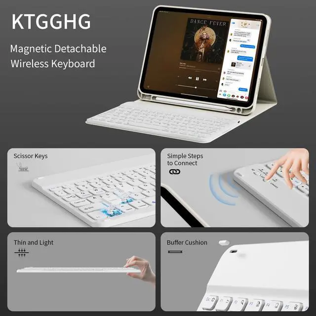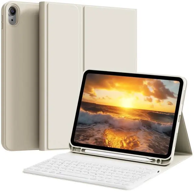KTGGHG Portable Keyboard Case for iPad 11-Inch A16 11th Gen/iPad 10.9-Inch 10th Generation(2025/2022) with Pebcil Holder, Magnetic Detachable Wireless Bluetooth Keyboard Protective Cover, White Cream