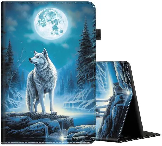 Case for All-New Kindle Fire 7 (2022 Release-12th Generation), Multi-Angle Smart Stand Cover Auto Sleep/Wake for Fire HD 7 Table, Wolf Under The Moon