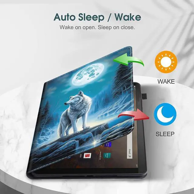 Wake Function: The Fire HD 7 2022 covers are integrated with a magnetic closure to ensure your cover stays shut while on the go, and automatically puts your Fire tablet to sleep when it is closed and wakes it upon opening. Saving power for longer reading time.