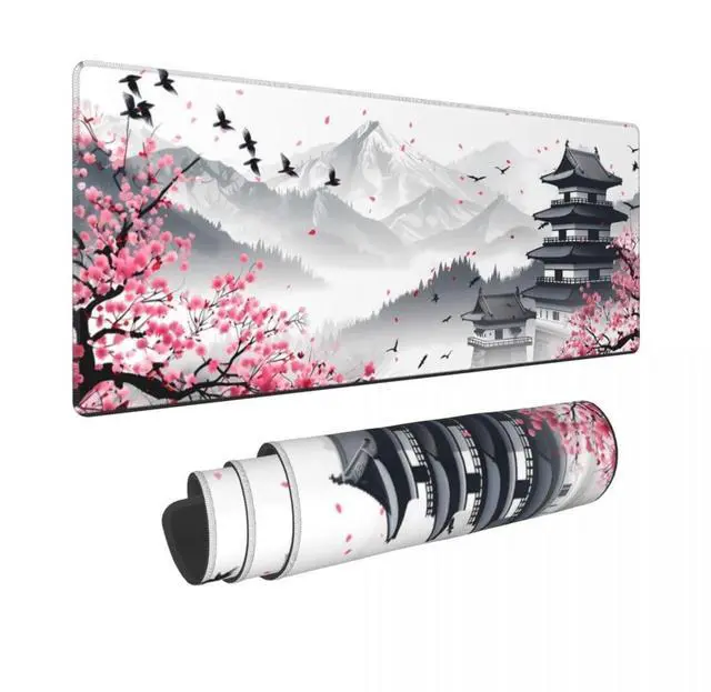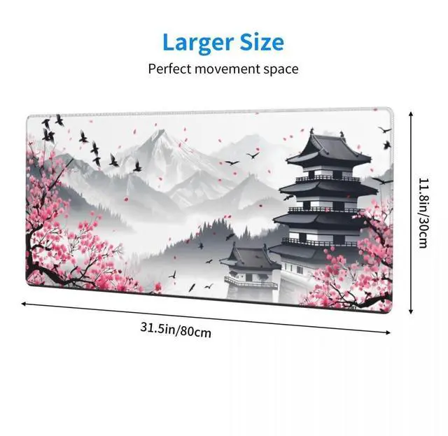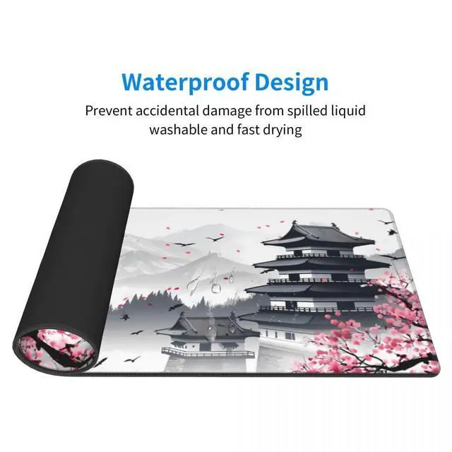 CANFLASHION Desk Pad,Office Desk Mat 31.5"11.8"Large Gaming Mouse Pad,Durable Extended Computer Mouse Pad,Waterproof Thick Big Mouse Pads with Non-Slip Rubber Base Office Home Japanese Castle Cherry