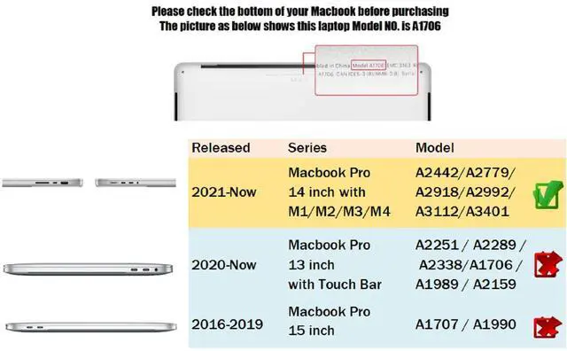 Compatible with Macbook Pro 14 inch M5 M4 M3 M2 M1 Pro/Max Model A3434 A2442 A2779 A2918 A2992 A3112 A3401 (2025 2024 2023 2022 2021 Release Version Only). ^^ Not compatible with MacBook other size and model. Please double check your laptop's model number ''Axxxx'' on the bottom of the laptop to determine the compatibility. ^^ Premium Quality Matte Finish Hard Shell Plastic Case for Silky-smooth soft-touch protect your MacBook against shock, scratch, dusty and other damage ^^ Easy to put on and take off and Plug your charger, cable or headset without removing the protective case.
