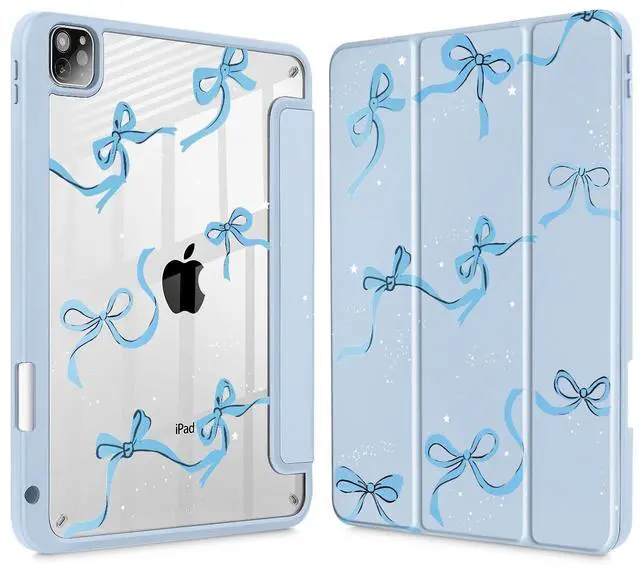 May Chen for iPad Pro 11 inch M2 4th Generation 2022, iPad Pro 11 3rd/2nd/1st Gen, Case with Transparent Shockproof Back Cover [Built-in Pencil Holder, Auto Sleep/Wake, Bows Blue