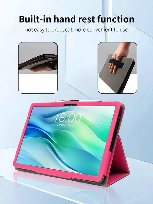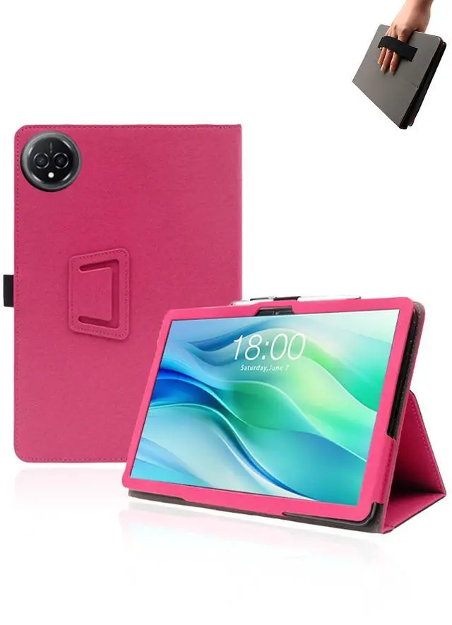 Case for FEONAL Android 14 Tablet 11 inch Tablets,11 inch Tablet,UYRUREL Leather Slim Folding Stand Cover with Hand Strap Magnet for Men Women Full Protection,Rosered.