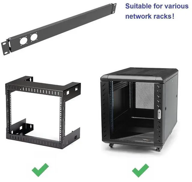 Features1U Hinged Rack Panel XLR HDMI Audio Rack Mount Panel Connectors Metal Punch Out Component Panel for Audio Enclosure or Server Computer Equipment Studio is designed to accept Audio D Series connectors for 19" Rack mount, such as XLR, HDMI. The 2 sides are higned design. You only need to unscrew one side when maintenance. Easy access and