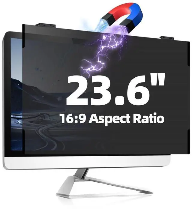 INNOVATIVE MAGNETIC DESIGN: Experience the ultimate convenience with the JEAPKA 23.6 inch magnetic computer screen privacy shield. This monitor screen filter features a powerful magnetic attachment system, allowing you to effortlessly secure or remove the filter without any tools. Ideal for dynamic work environments, the magnetic design enables quick transitioning between private viewing and open screen experiences, enjoy the benefits of unlimited reusability and makes it easy to secure to your monitor when privacy is needed and just as easy to remove instantly without damaging your fingers or screen. ^^ IMPROVED PRIVACY FILTER WITH ENHANCED AESTHETICS - With advanced technology, the magnetic computer screen privacy shield offers clear frontal views and side-view protection, blocking unwanted glances at your information. Designed for 30 to 60 side angles, it combines privacy with a sleek look that enhances your workspace. Easy to clean and reusable, it stays new, merging privacy, style, and practicality. ^^ UNIVERSAL COMPATIBILITY FOR 23.6 INCH MONITORS - Our upgraded 23.6 inch magnetic privacy screen filter is compatible with flat monitors with 16:9 aspect ratio. 23.6" diagonal, 53.25 cm/ 20.96 '' in width, and 29.9 cm/ 11.77 '' in height.