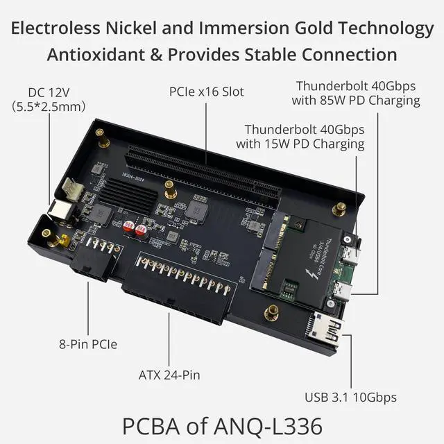 ^^ Flexible Power Options: Compatible with ATX, SFX, FLEX, and DC 12V power supplies, our docking station supports PD charging up to 85W. Please note that the PSU is not included in the package.