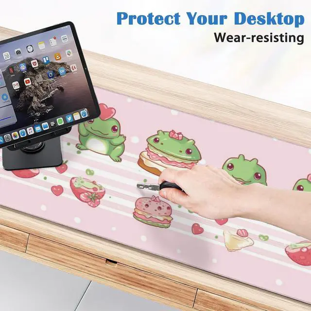 Cute Frog Desk Mat Mouse Pad,Large Gaming Desk Pad Mousepad, Computer Laptop Keyboard and Mouse Mat,Desktop Protector Mat for Women Girl Office 31.5x15.7 in