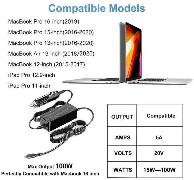 Charger Wide Compatibility: PD 3.0 100W USB C macbook charger can automatically recognize your device and provide the fastest and most efficient output current USB Type C PD 100W USB C Car Charger for MacBook Pro, MacBook Air, iPhone, iPad Pro, iPad Air, Chromebook, Laptop, Notebook, Android, Smart Phone, Samsung Galaxy, Huawei Matebook, Dell XPS 13 14 15 Latitude Inspiron 14/16, HP Envy Chromebook Spectre EliteBook, Type-C Tablets, Smartphones, Docking Station Switch Docks, Rog Ally Docks, Type C Docks of Laptop/Gamepad/Controller, Asus Rog Ally, Switch Lite, PS5 Controller, Pro Gamepad, Xbox Gamepad ^^ 100W USB C DC Adapter Converter Compatible with MacBook Pro/Air, Lenovo ThinkBook Plus G3 13x 14G5 14G6 14s 14p 16G4+16p Lenovo ThinkPad neo 14 P14s L15 T16 Yoga 7 Pro7 9 9i Slim 6i 7i Lenovo IdeaPad 5 Pro Slim USB C AC Adapter, ThinkPad T14 T15 E14 E15 X1Carbon X13 2023 Power Cord, Lenovo Yoga C930 C730 920 910 S940 ThinkPad E590 E490 E480 L480 T480 X280 Chromebook C330 S330, ASUS Chromebook CX1 C223, Acer Chromebook 314; HP Spectre 15-bl000 15-bl100 x360 Convertible PC Elitebook x360 1040 G5