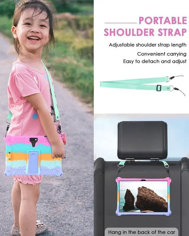 • Portable Strap: Equipped with a adjustable strap to carry your tablet out easily. You can hang the tablet on the back seat of your car when you travel. Ideal for of