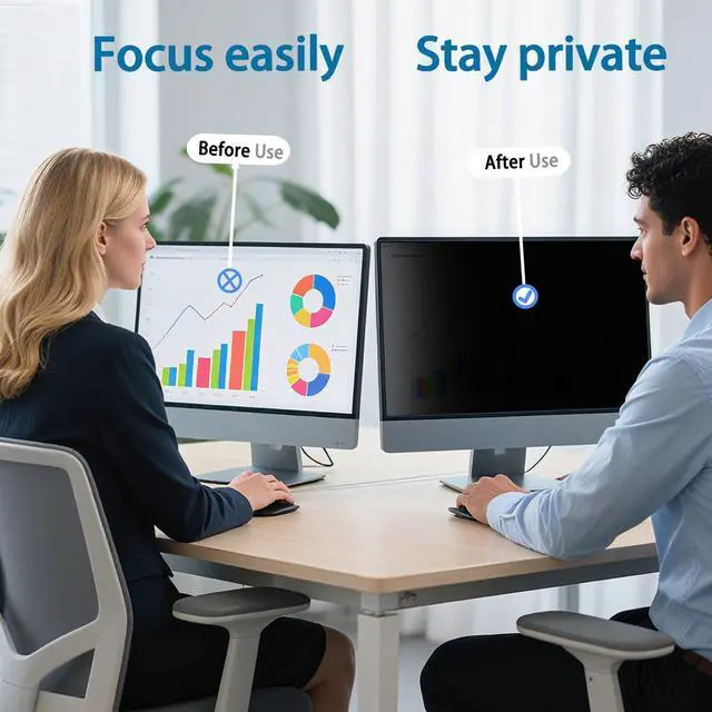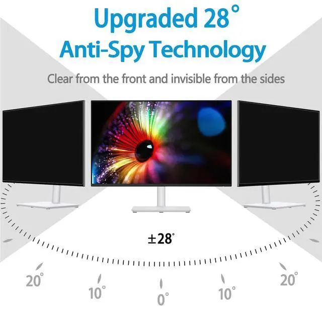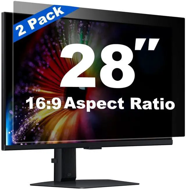 For 28" Inch Desktop MonitorPrecisely engineered for 28-inch widescreen monitors with a 16:9 aspect ratio, Width: 24 7/16" (621 mm), Height: 13 1/2" (342 mm), Diagonal: 28". Ensures a perfect fit for brands like HP, Dell, Samsung, Lenovo, LG, Acer, ASUS, ViewSonic, Sceptre, and other monitor brandse. This 2-Pack offers exceptional value, protecting multiple screens or providing a backup. ^^ Total PrivacySafeguard your sensitive information with our advanced privacy screen filter. Utilizing micro-louver technology, it limits the viewing angle to +/- 28. Enjoy a clear screen from the front while side views appear completely black, preventing visual hacking in offices, cafes, and airports. ^^ Eye ComfortProtect your vision during long work hours. Our computer privacy screen uses advanced optical materials to effectively filter blue light and eliminate glare. This combination significantly reduces eye strain and fatigue, ensuring comfortable viewing and enhanced focus. ^^ Easy SetupEnjoy ultimate flexibility with two unique installation options. Use the removable slide mount tabs for easy on-and-off convenience, or the double-sided adhesive strips for a permanent, secure fit. The reusable and anti-scratch film protects your monitor without leaving residue. ^^ Complete Kit & SupportBuy with confidence! Each 2-Pack includes everything needed for installation: privacy films, adhesive strips, slide mounts, and cleaning kits. Backed by our reliable Lifetime Support Policy, we guarantee a free replacement for any issues, ensuring your long-term satisfaction.