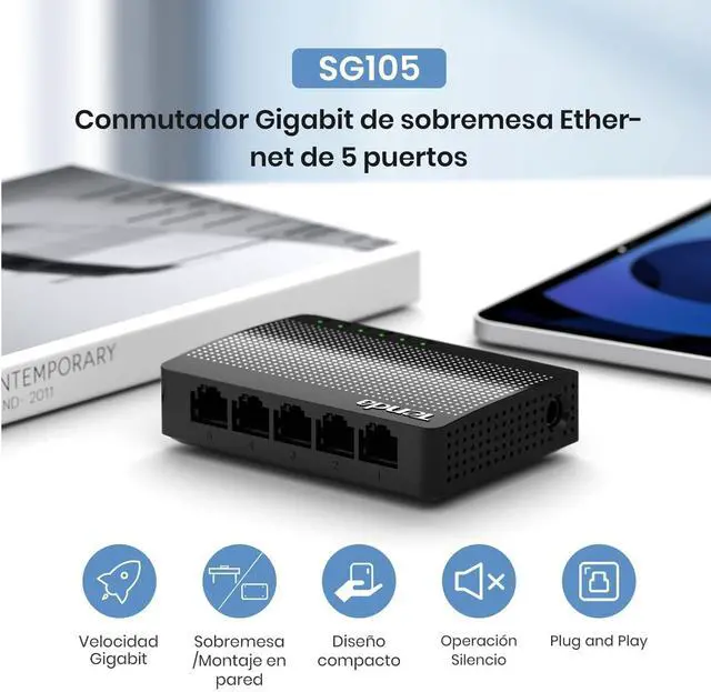 PLUG AND PLAYEasy setup with no configuration or software required, silent operation, SG105 is your perfect 5 port gigabit switch choice ^^ GIGABIT SPEEDEthernet splitter provides 5 10/ 100/ 1000Mbps Auto-negotiating MDIX RJ45 Ethernet ports, all ports support wire-speed forwarding, up to 1000 megabits per second ^^ MINI & FASHIONABLETenda network switch with a mini design, taking up minimal space while delivering maximum efficiency ^^ ETHERNET SPLITTERSG105 Ethernet switch provides quick and easy connectivity to your Mesh System, router and modem, offering additional wired connections for your laptop, gaming console, printer, etc ^^ INTELLIGENT RECOGNITIONEthernet switch 5 port can automatically identify the parallel line and intersecting line without pertinent setup