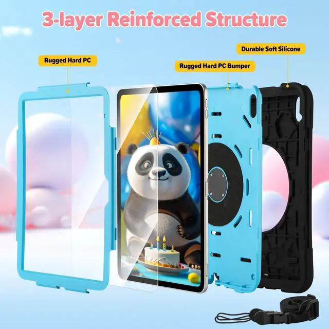 Screen Protector: This special 3D Panda case comes with a hard tempered glass screen protector with blue light protection, which is made with high quality scratch-proof premium tempered glass, high-response and high-transparency and can be used perfectly with stylus pen for clicking, writing or drawing. The iPad (A16) 11th Gen 11"/10th Gen 10.9" screen protector can effectively withstand unwanted scuffs and scratches, reducing damage to the screen for iPad 11th/10th Generation tablet. ^^ Advanced Shock and