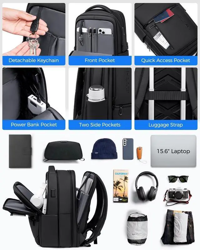 Large Capacity: This 25-36L smart backpack fits 2-3 days of essentialsfeaturing a dedicated laptop compartment, multiple pockets, and a secure hidden pocket. Perfect for work, commuting, and day trips ^^