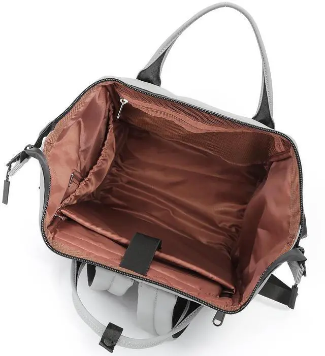 DescriptionHimawari Waterproof Lightweight Laptop Backpack combines style and functionality in a sleek gray design. This versatile backpack features a spacious main compartment with a brown interior lining, perfect for organizing your laptop and daily essentials. The durable, water-resistant exterior material protects your belongings, while comfortable padded shoulder straps and breathable mesh backing ensure all-day carrying comfort. Multiple compartments and pockets, including a front zippered pocket, help keep your items organized and easily accessible. The backpack's thoughtful design includes reinforced stitching, quality zippers, and adjustable straps for a customized fit.