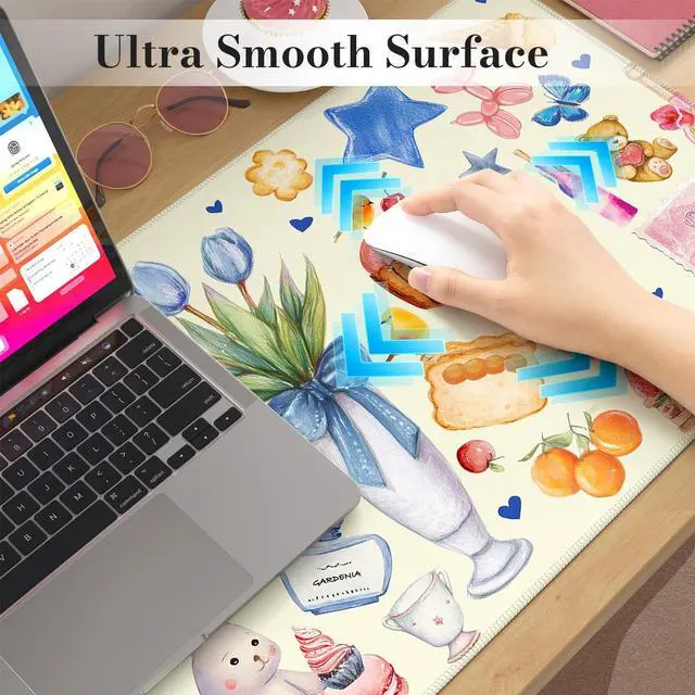 Stitched Edges: The desk protector mat made of high-quality material which offers comfortable gaming or working. High-quality computer mouse pad for laptop edges are finished so as to deformation, and degumming in prolonged use and are comfortable for your wrists and hands ^^