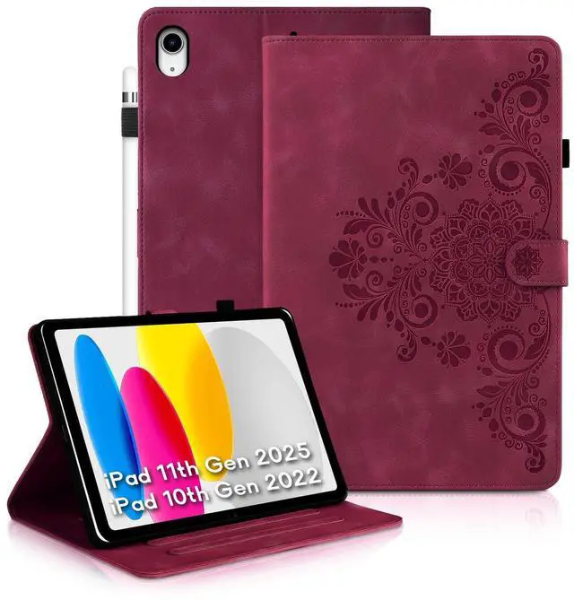 Mantala Funda para for ipad 10th Generation case(2022 10.9 Inch), Soft Touch Faux Leather with Card Slots, Water-Proof Precise Cutouts Compatible with ipad 16 case(2025 11 Inch) Wine Red