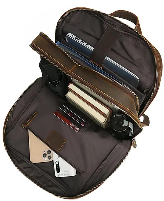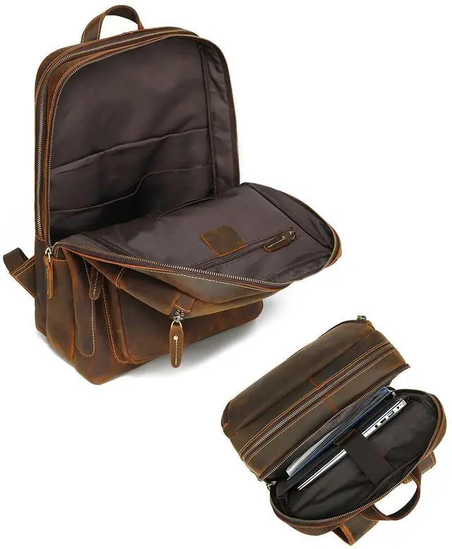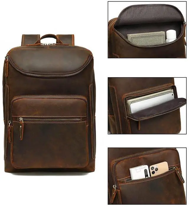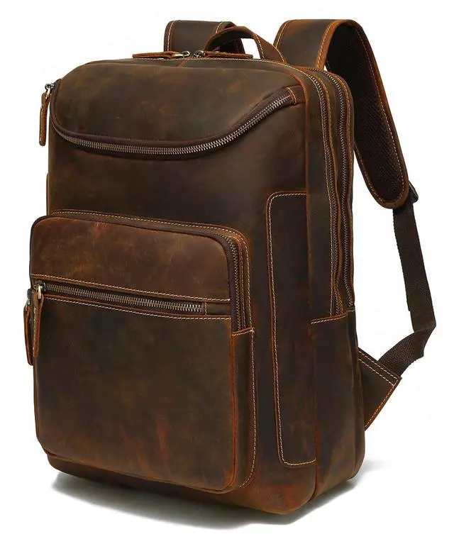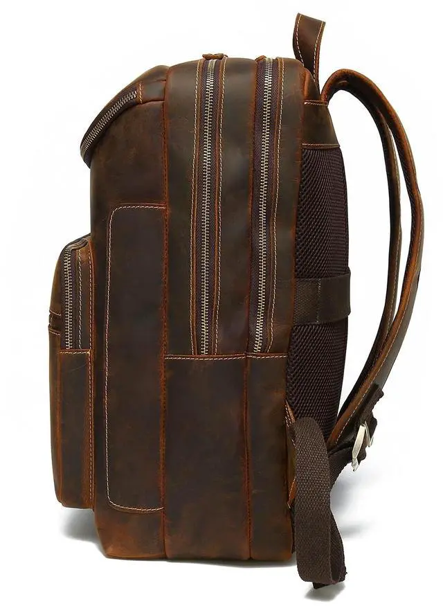Crafted in refined vintage Italian full grain leather, messy wrinkles and scratches on the surface create a retro and wild looking. Juxtaposed with a canvas mesh air flow back for comfortable wearing, dimensions: 16.1 (H) "x 11.8 (L) "x 5.51 (W) ", Weight: 3.4 LB.