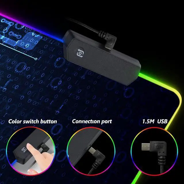 Included: 1 Large RGB Gaming Mouse Pad. 1 x cup coaster. 1 x Data Line.